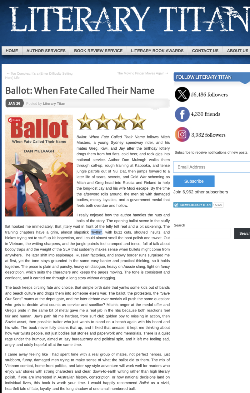 Ballot Nominated for Literary Titan Silver Award